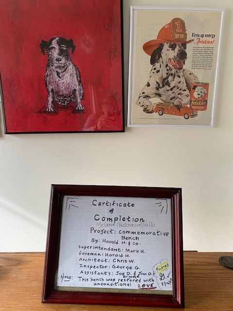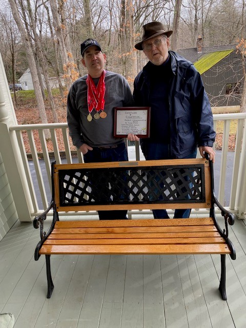 The Certificate of Completion has been framed and it rests on Mark’s headboard. Mark as superintendent, and I, as his foreman, want to thank Chris W., George G., Joe D., Jim O., Briana C. and everyone for their technical and emotional support on this Memorial Bench.