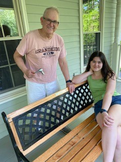 Kiana came home for the summer. We couldn’t wait to show her the bench. She looked at it and the first thing she said is “The grates are backwards.” I was wondering why it was so uncomfortable. So, with Kiana’s help, we took apart the back section, and put the grates in correctly.
