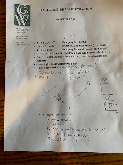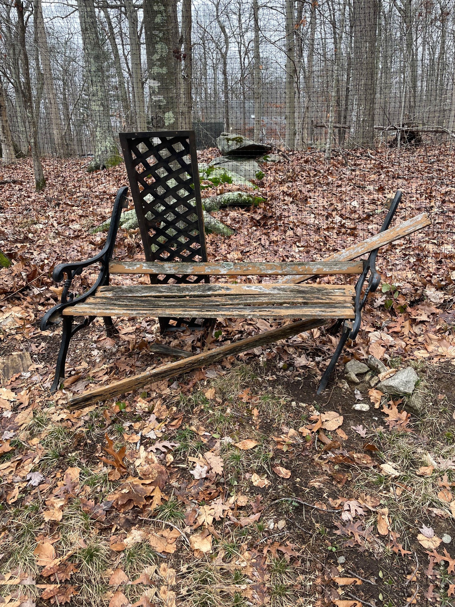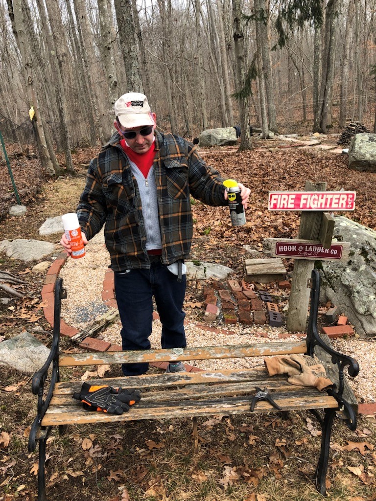 Since I didn’t know the first thing about restoring a bench, I did what guys who are lost rarely do. I asked for directions. I learned that it takes a village to restore a bench. I hired my friend Chris Widmer, an architect, to develop a material list. His fee was a cold can of sparkling water and a serving of Cheetos. Then I hired another friend, George Gdovin, a building official, to ensure that the proper “imaginary” permits were secured and that the workmanship was up to code. The fee was a little steeper. It cost a cup of gourmet coffee, and a blueberry muffin.